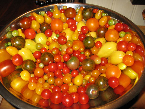 Tomatoes of all colors from Amy Goldman’s garden (Photo: Joanna Rifkin)